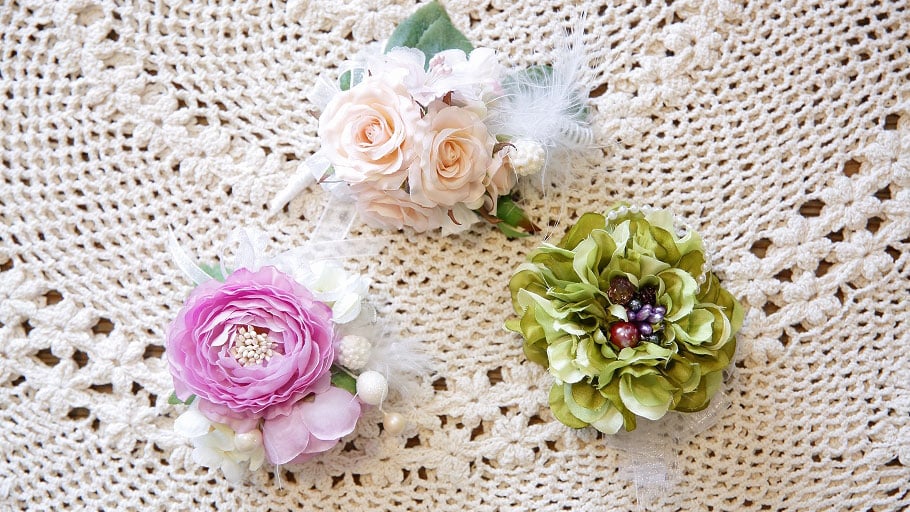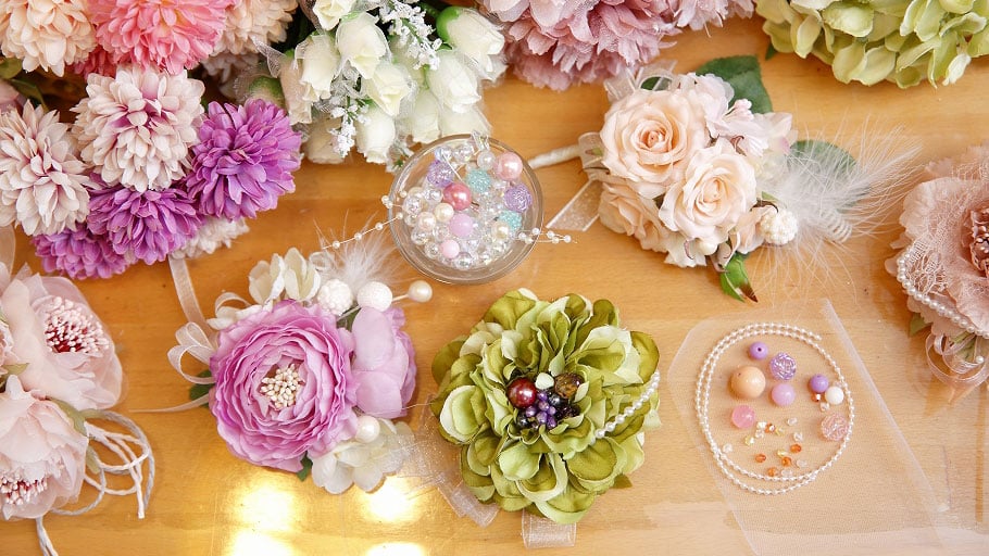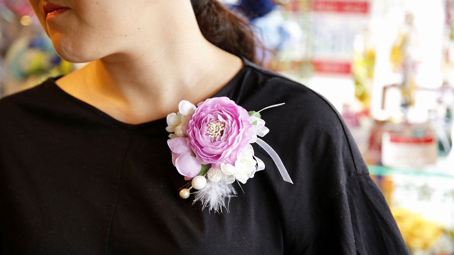 たくさんのお花の中からお選び頂きコサージュを手作りすればとてもいい記念、思い出になること間違いなし!!応用すれば髪飾りやブライダルブーケ、リースなどいろんなものが作れるようになります。