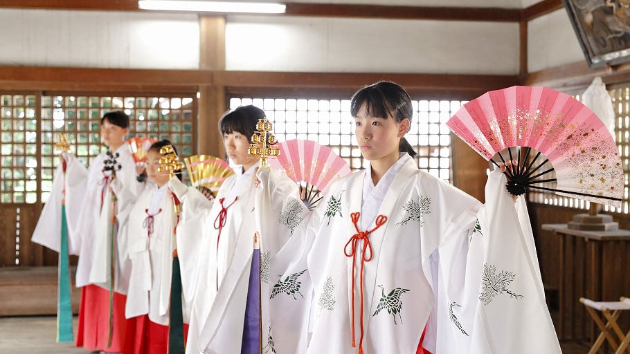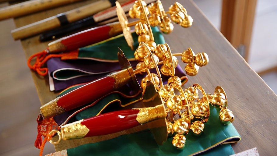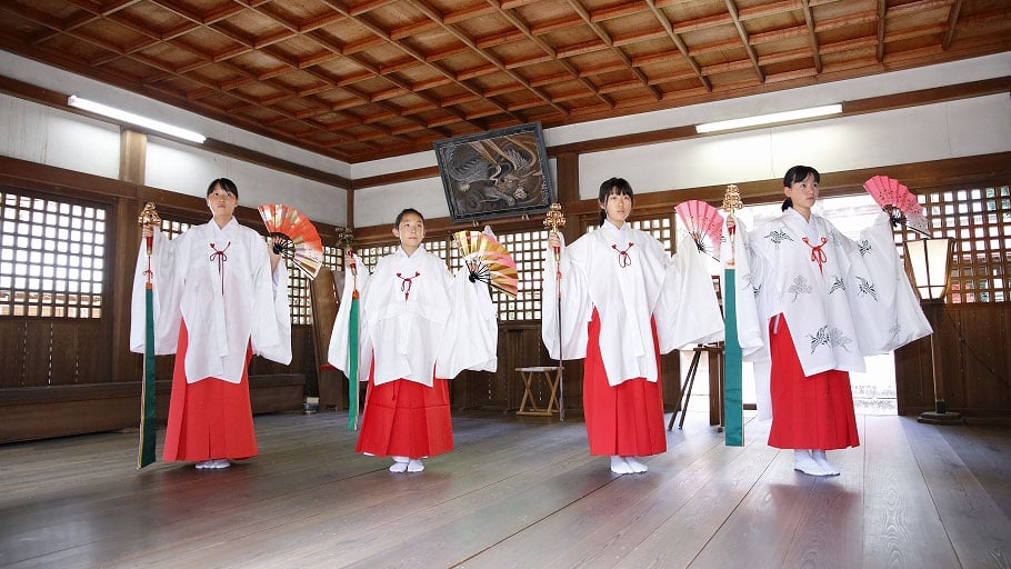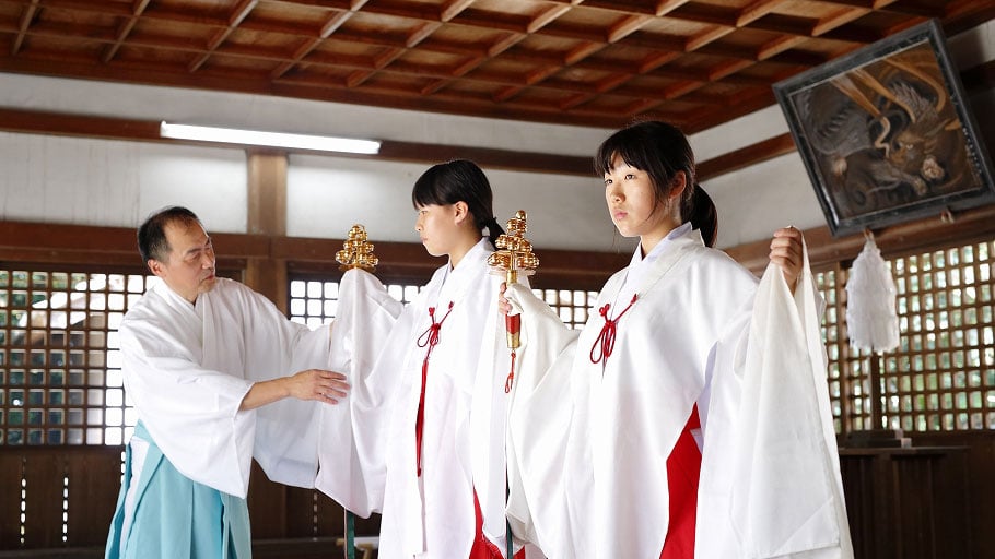 古くから伝わる村屋神社独自の「代々神楽」を体験。